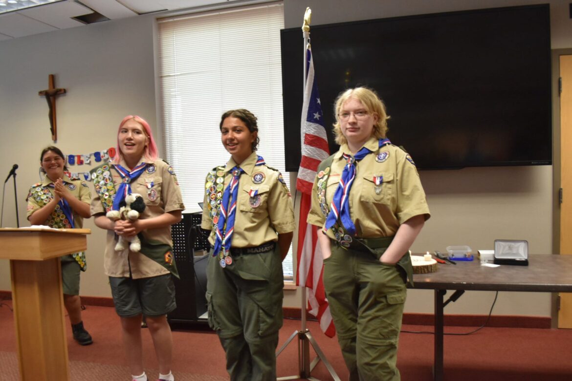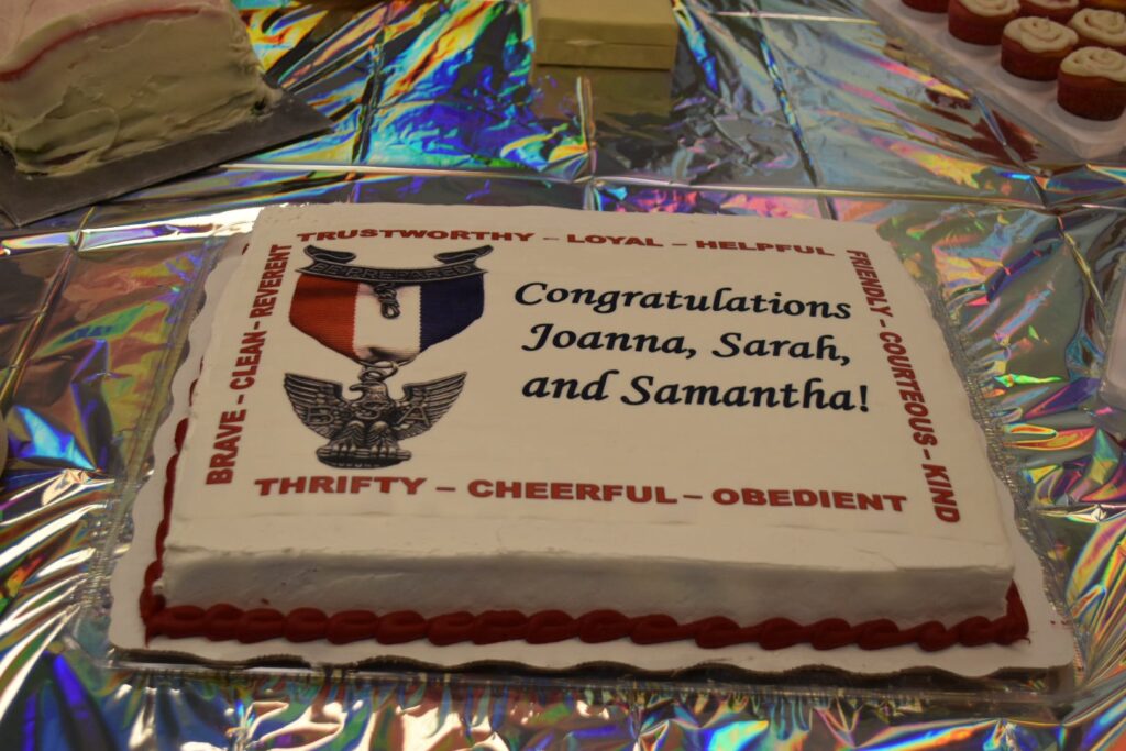 We celebrated our 3 newest Eagle Scouts: Joanna, Sarah, and Samantha with an Eagle Court of Honor on June 7, 2025. We also recognized Sarah’s achievement of earning the Girl Scout Gold Award.