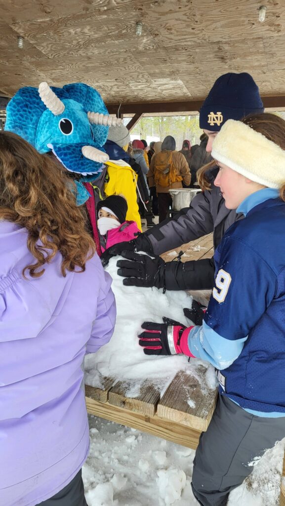 Troop 652G attended the Dinosaur Klondike at the Beaumont Scout Reservation in -14 degree weather! We had so much fun and the girls were able to show their skills at first aid, knot tying, volcano building, an obstacle course, ice cream making, archery, an egg drop, orienteering, tripod lashing, Dutch oven cooking, and building an apparatus to transport an acorn.